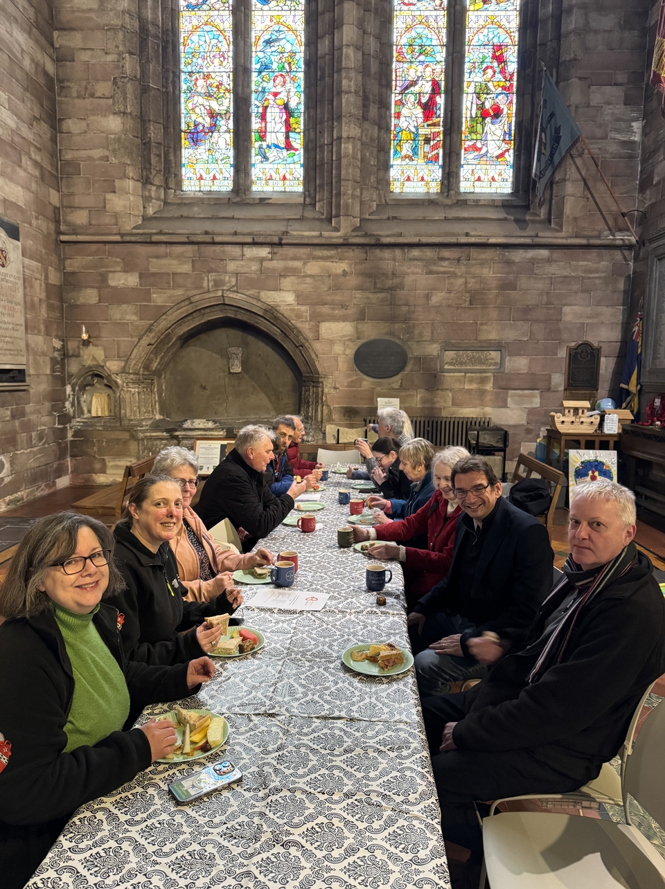 Mae’r gwasanaeth Cymraeg gyda’r Cymun Bendigaid, wedi’i ddilyn gan ginio, yn cynnig gofod hamddenol i ddysgwyr glywed a defnyddio’r Gymraeg sy’n llenwi eglwysi ar hyd a lled Cymru—iaith na ddysgir yn aml mewn gwerslyfrau ond sy’n hanfodol ar gyfer deall diwylliant a bywyd cymunedol Cymraeg.