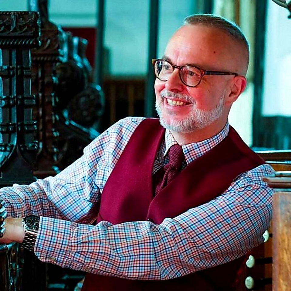 Chris, a former councillor and honorary Bailie of Conwy, began playing the organ at St Mary’s Church, Conwy, in the Diocese of Bangor, fifty years ago at the age of 14. He took over leadership of the church choir at the age of 21 and since then has played a central role in sustaining the church’s musical life, which includes a monthly Choral Evensong. He began organising lunchtime concerts at the church with soprano, Myfanwy Roberts, in 1981, and in 2005 founded the Conwy Classical Music Festival, which runs for a week each July and which features internationally known performers as well as supporting local musicians, particularly those at the start of their professional careers.