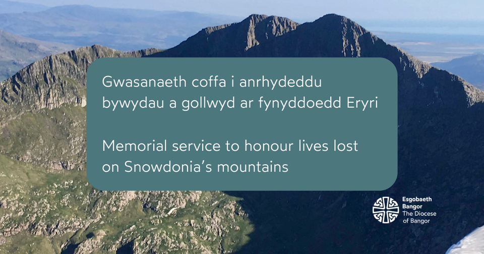 The gathering, titled Cysgod yr Wyddfa (“In Yr Wyddfa’s Shadow”), will be held at Nant Peris Church on Sunday 26 October from 5.30pm to 6.00pm. It has been organised by the Revd Naomi Starkey, Ministry Area Leader for Bro Eryri, following a series of recent mountain fatalities.